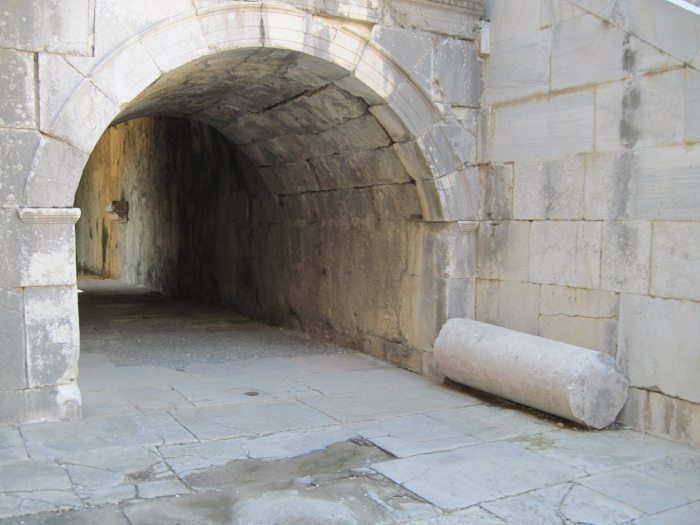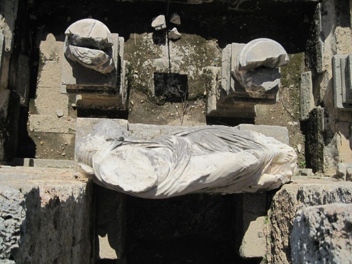 Особенностью этого нимфеума является то, что его украшает нимфа с оторванной головой.