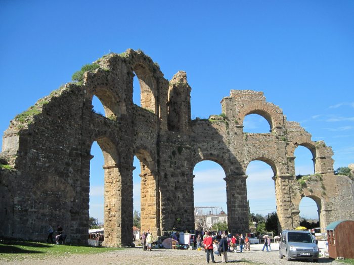 Далее поехали к остаткам высокого римского арочного акведука. Его длина была 15 км и состоял он из хитроумной системы сифонов, благодаря которой вода поступала в город из родников в горах. Я ожидал большего... Но в отличии от театра в Аспендосе, посещение акведука бесплатно и соответственно более доступно.