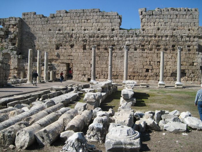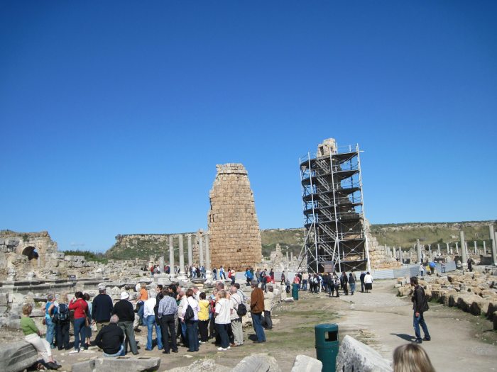 Основные достопримечательности Перге: театр на 15 тыс. человек, стадион на 12 тысяч зрителей, южные ворота эллинистической эпохи, возвышающиеся в виде полуразрушенных круглых башен, баня, которая считалась самой большой баней в Памфилии и безусловно агора. Театр на реконструкции и закрыт для посещений, на стадион мы не ходили.