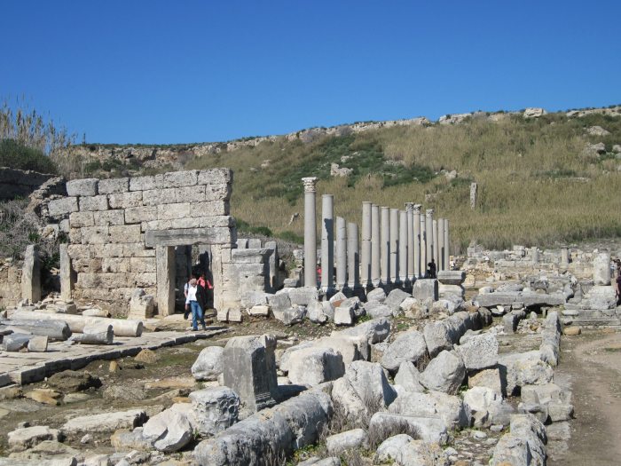 Те самые южные ворота эллинистической эпохи, возвышающиеся в виде полуразрушенных круглых башен. Вдали виднеется гора. К этой горе ведет хорошо сохранившаяся центральная улица города. А под горой не откопана другая часть города. Когда-нибудь, надеюсь, выкопают.