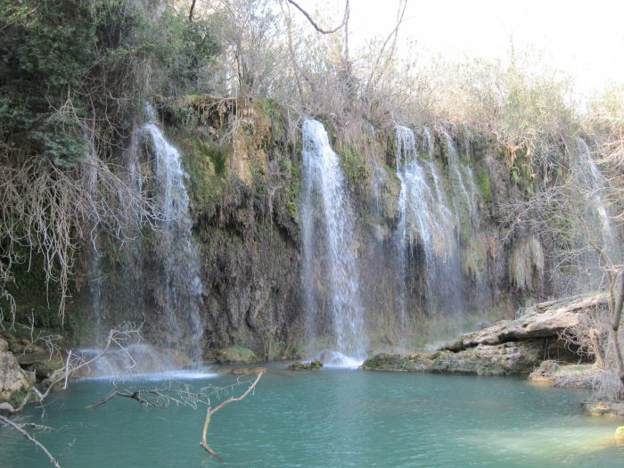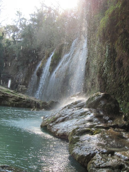 Водопад Куршунлу - это не только водопад, но и один из национальных парков Анталии со множеством маленьких водопадов, голубых лагун и зеленых оазисов. От Анталии водопад находится совсем близко – каких-то километров 20, и попадаешь совсем в другой мир. Вход всего 2,5 лиры с человека, машинам въезд запрещен, поэтому в парке потрясающе чистый воздух.