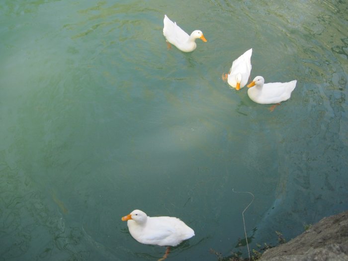 Вода Куршунлу кристально чистая, и на солнце приобретает своеобразный бирюзовый оттенок. Мы стали бросать хлеб и кормить рыб. Рыбы поначалу охотно ели и плескались, причем рыбы были немаленькие. Но увидев это, приплыли утки и жадно стали есть хлеб, распугав тем самым всю рыбу.