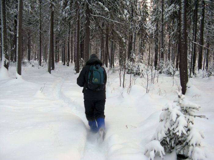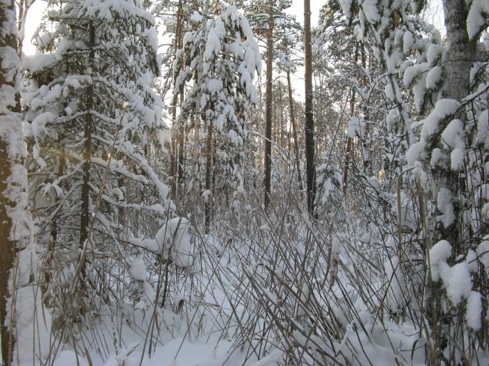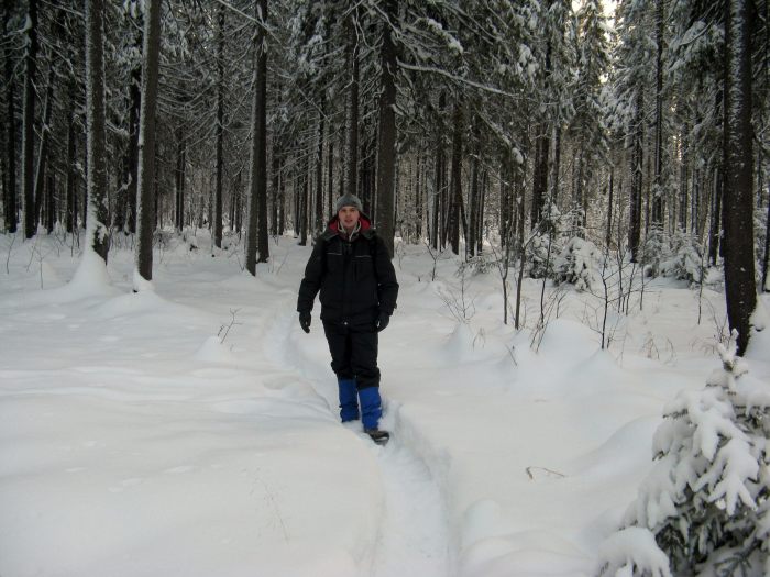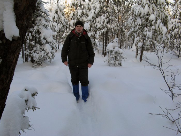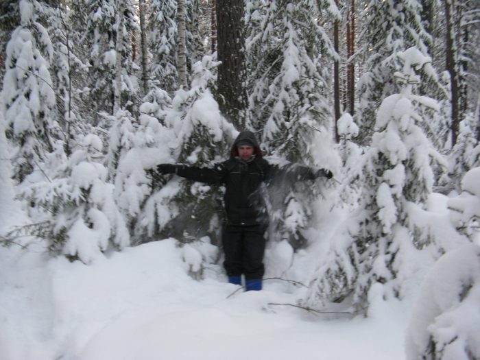 Кругом потрясающий густой еловый лес. Т.к. Вася шел медленнее чем я, т.е. он отставал, то местами при отдалении на несколько десятков шагов мы уже не видели друг друга.