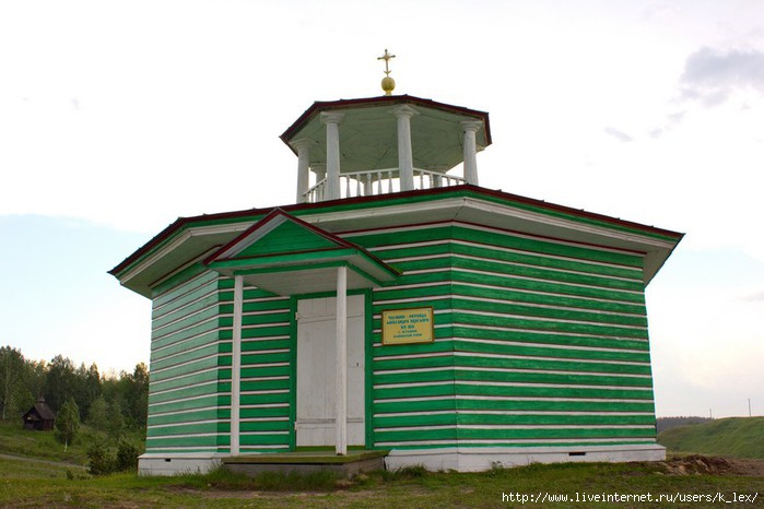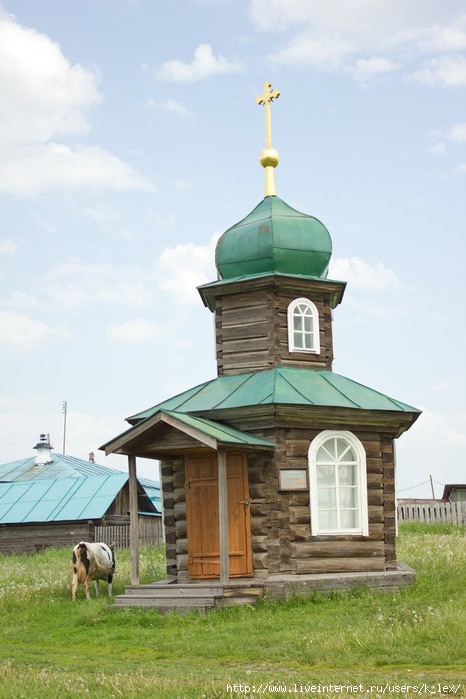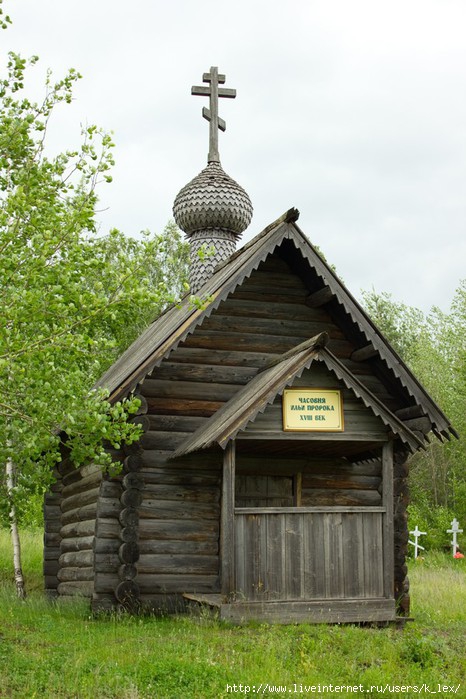 После этого мы отправились искать тайник, который мотивировал нас сюда приехать. На обратном пути повернули к кладбищу, где был последний не осмотренный нами объект - красивая деревянная часовня 18 века Ильи Пророка. Часовня Ильи Пророка относится к старейшему на Урале типу клетских (из срубов-клетей) культовых сооружений, состоящих из сруба с двускатной крышей, над которой возвышается главка с круглым барабаном и луковицей