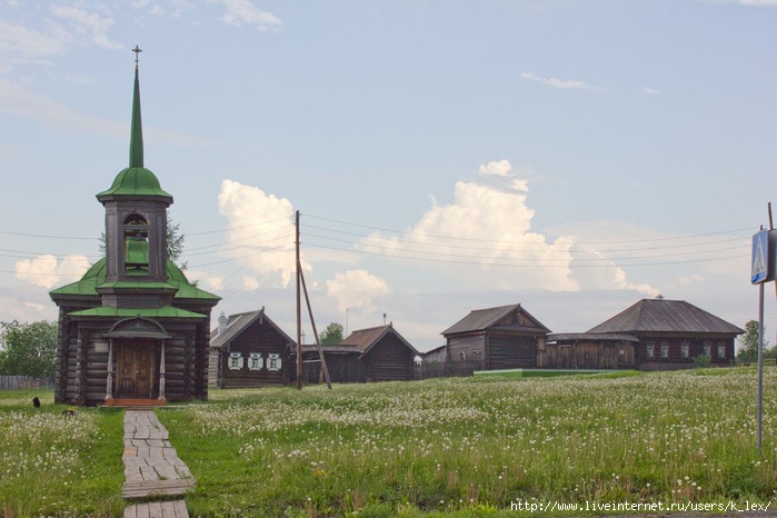Часовня Савватия и Зосимы Соловецких и крестьянские усадьбы 18 и 19 веков (слева на право).