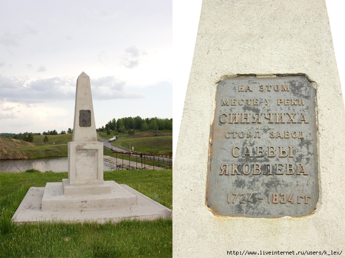 Справа от башни стоит скромный памятник. Памятник заводу.